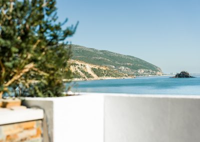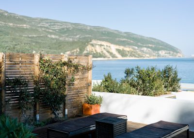 A envolvência perfeita entre o conforto moderno e a serenidade da Serra da Arrábida. Esta opção ocupa o piso superior da Casa 6, oferecendo divisões amplas e luminosas que convidam ao descanso. O destaque vai para o generoso alpendre e o acesso ao jardim, espaços privilegiados onde o azul do mar e o verde da serra se fundem, proporcionando o cenário ideal para refeições ao ar livre ou momentos de pura descontração.